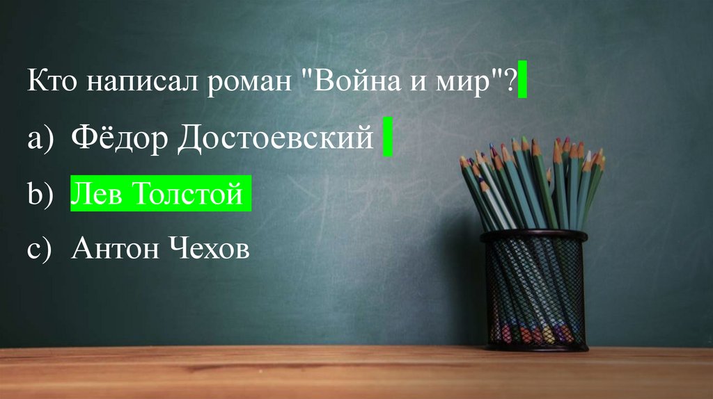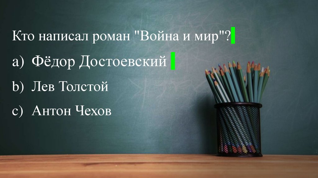 Кто написал роман "Война и мир"?a) Фёдор Достоевский