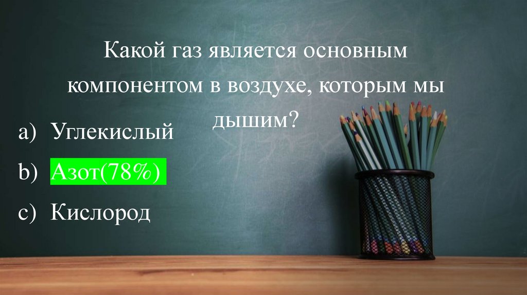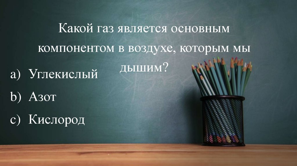 Какой газ является основнымкомпонентом в воздухе, которым мы