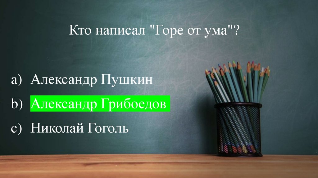 Кто написал "Горе от ума"?a) Александр Пушкин