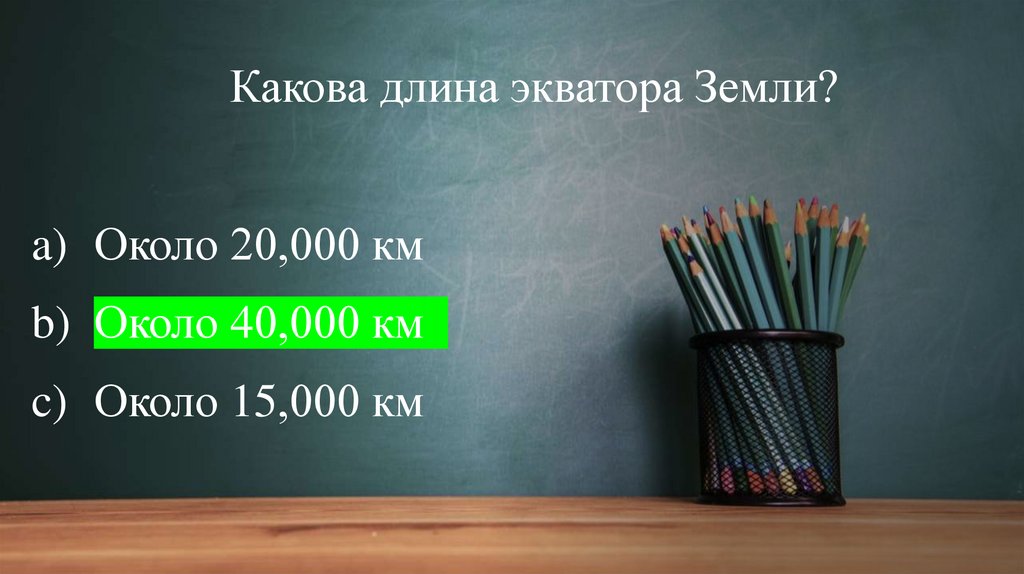 Какова длина экватора Земли?a) Около 20,000 км