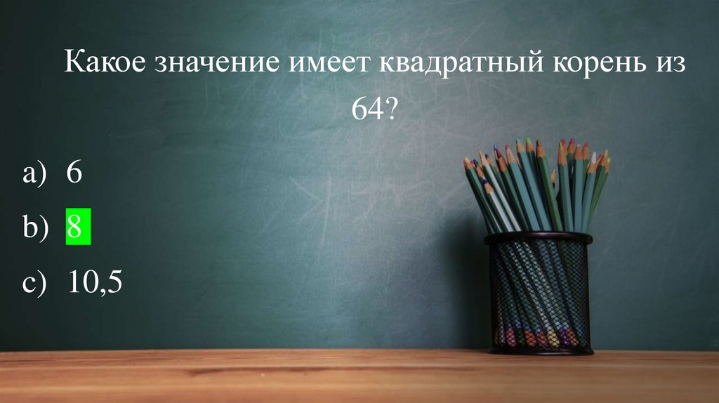 Какое значение имеет квадратный корень из64?