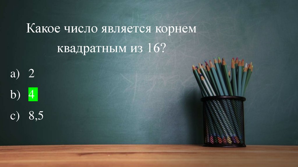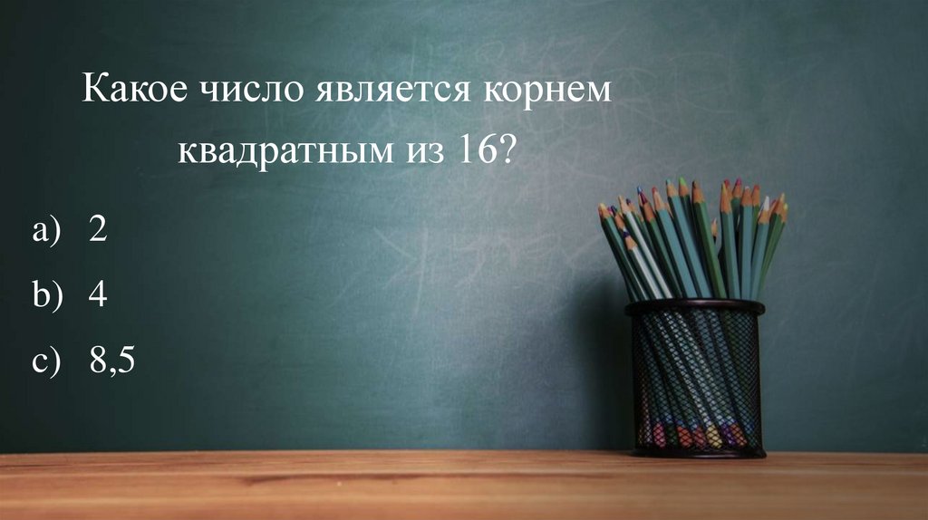 Какое число является корнемквадратным из 16?