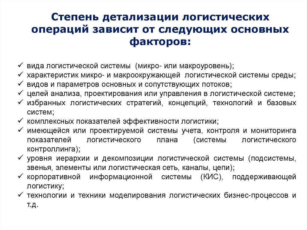уровня иерархии и декомпозиции логистической системы (подсистемы,