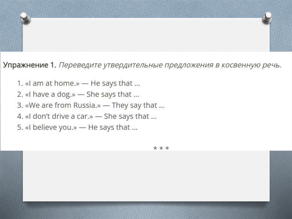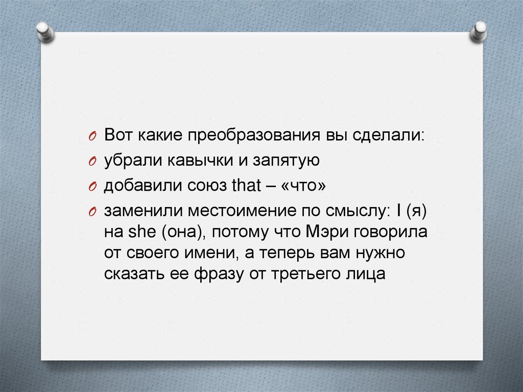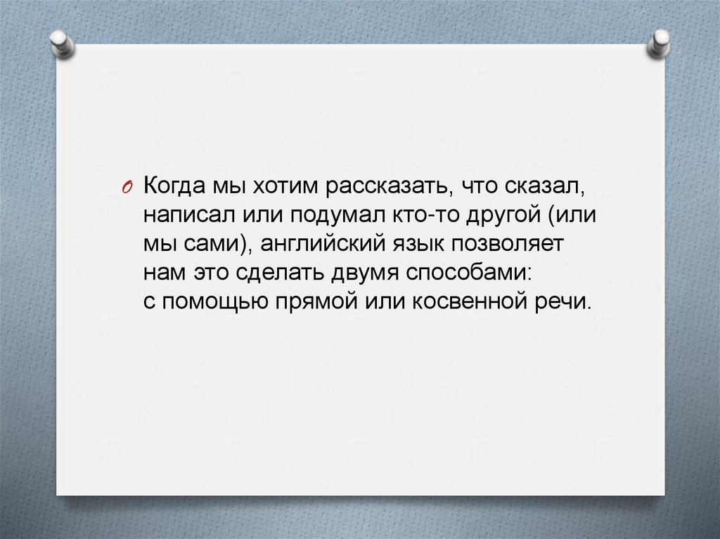 O Когда мы хотим рассказать, что сказал,написал или подумал кто-то другой (или