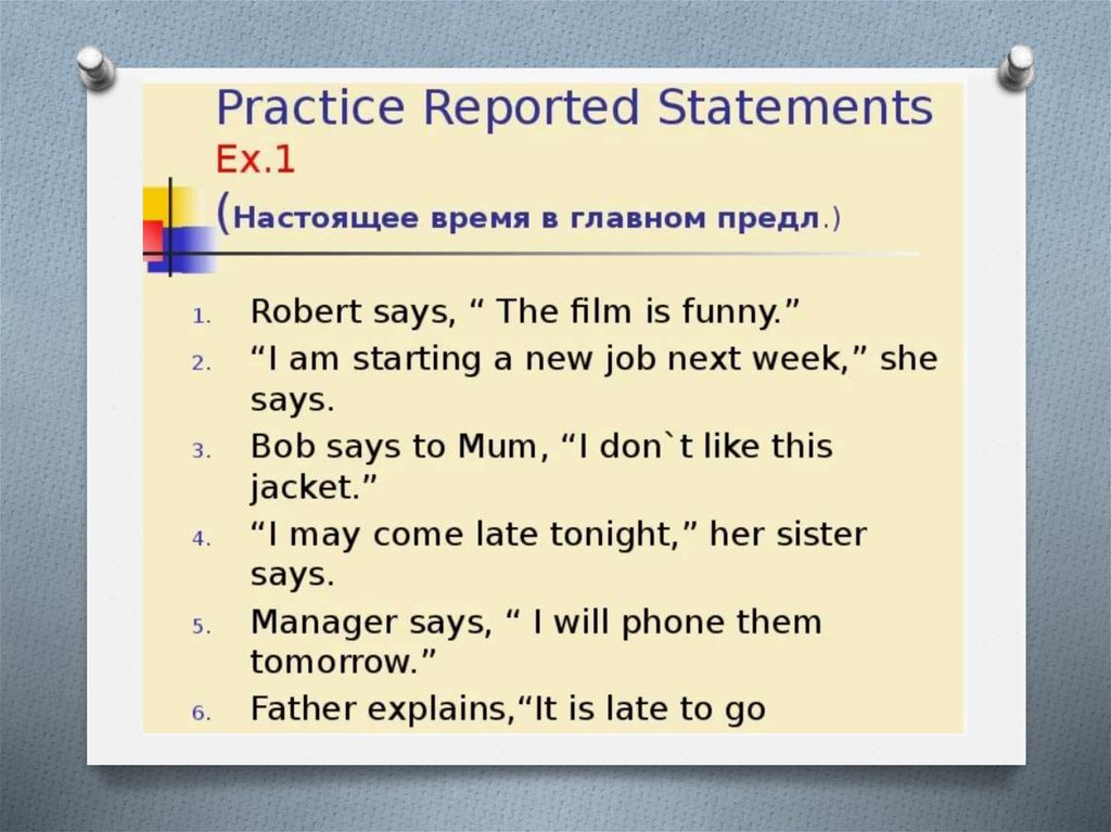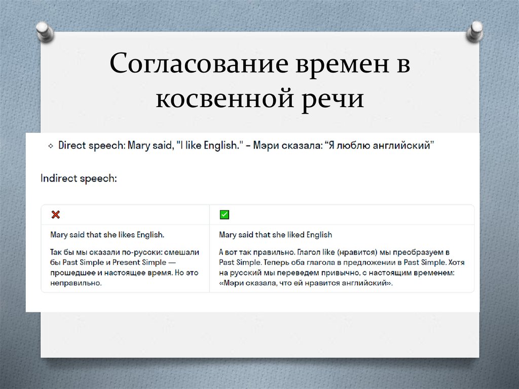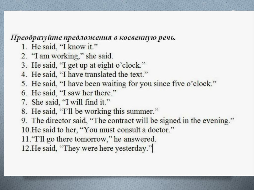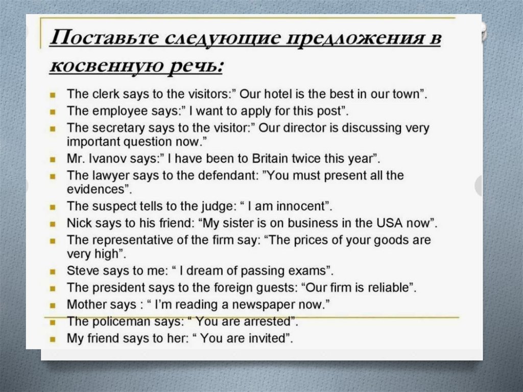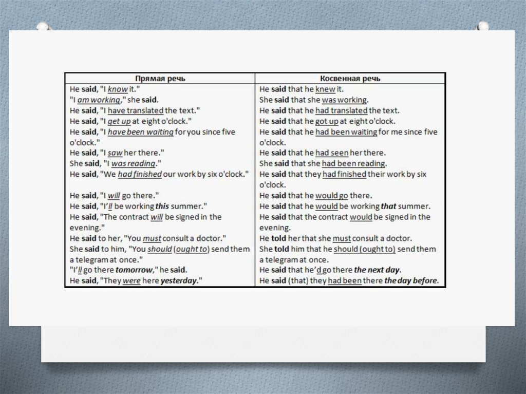 Прямая и косвенная речь в английском языке /direct and reported speech
