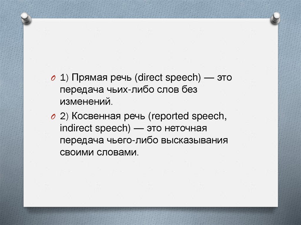 O 1) Прямая речь (direct speech) — этопередача чьих-либо слов без