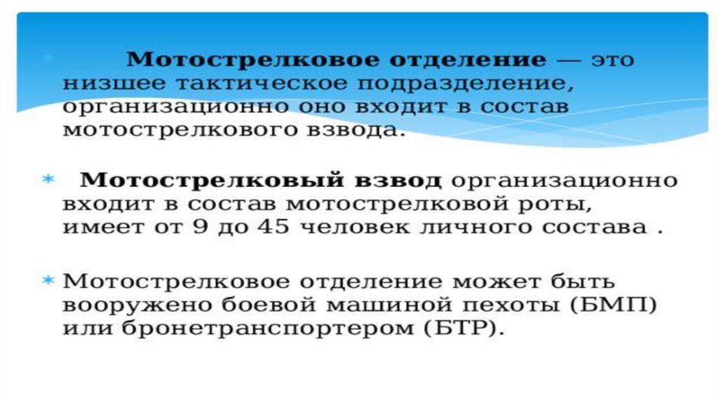 Организация, вооружение и боевая техника подразделений мотострелкового отделения, взвода, роты. Тактическая подготовка