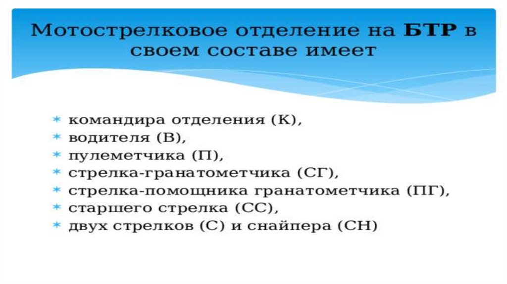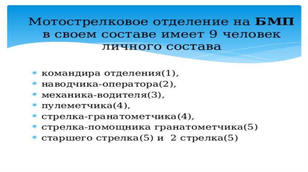 Организационно-штатная структура мотострелкового отделения (взвода). Мотострелковое отделение