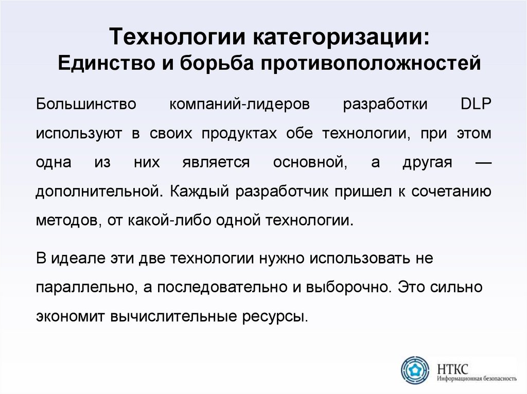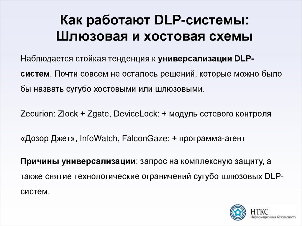 Наблюдается стойкая тенденция к универсализации DLPсистем. Почти совсем не осталось решений, которые можно было