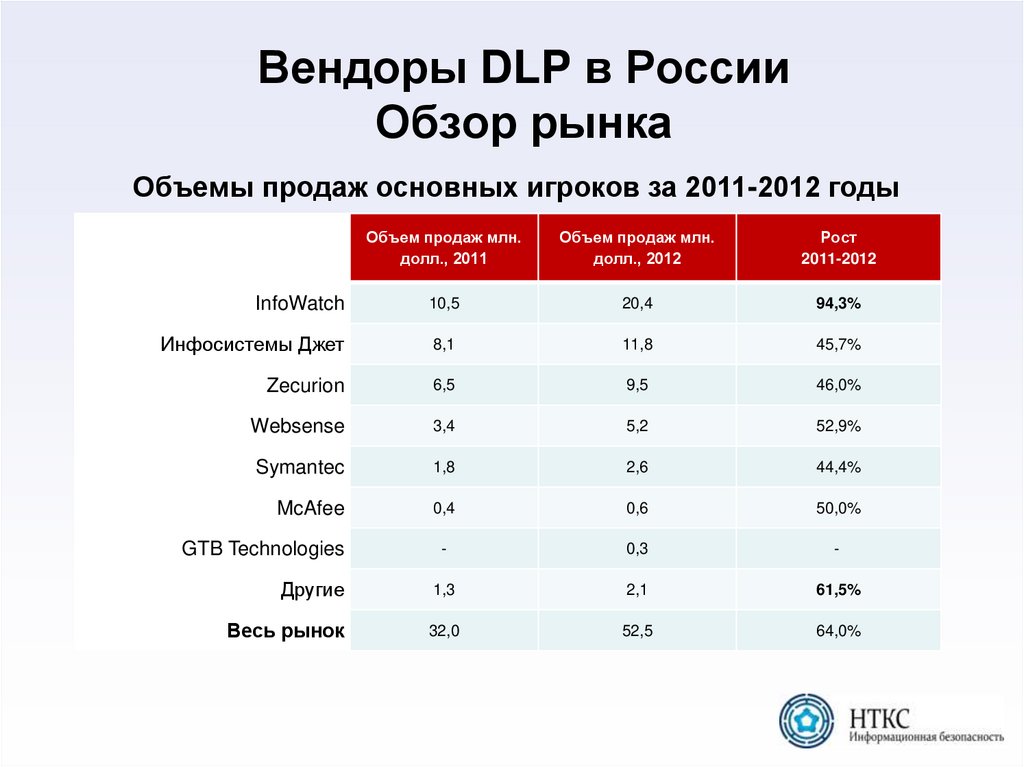 Доли основных участников DLP-рынка в России 2011-12 годы
