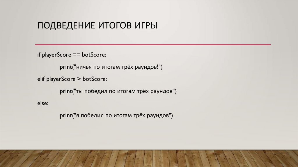 ПОДВЕДЕНИЕ ИТОГОВ ИГРЫif playerScore == botScore: