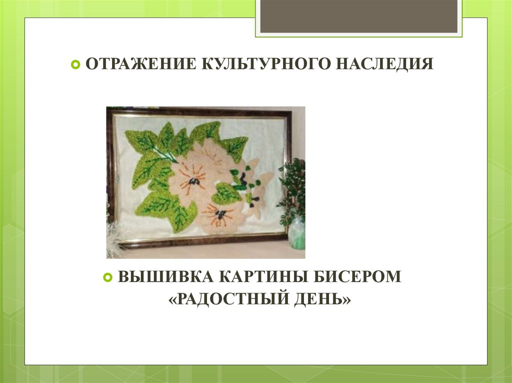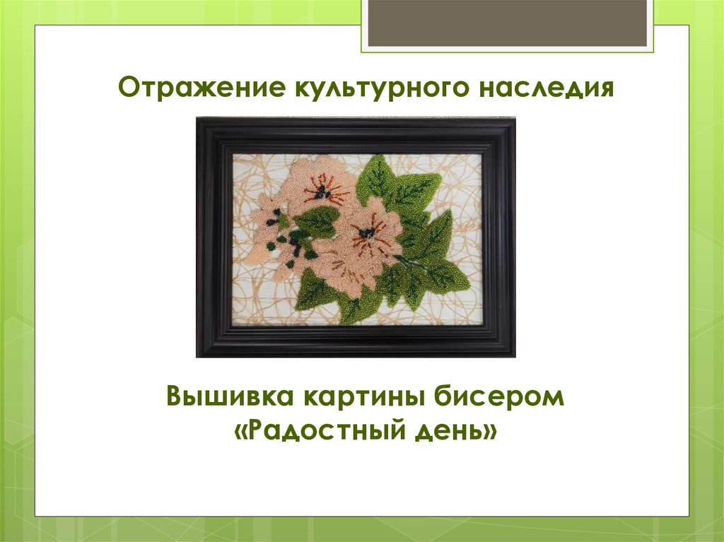 Отражение культурного наследия. Вышивка картины бисером «радостный день»