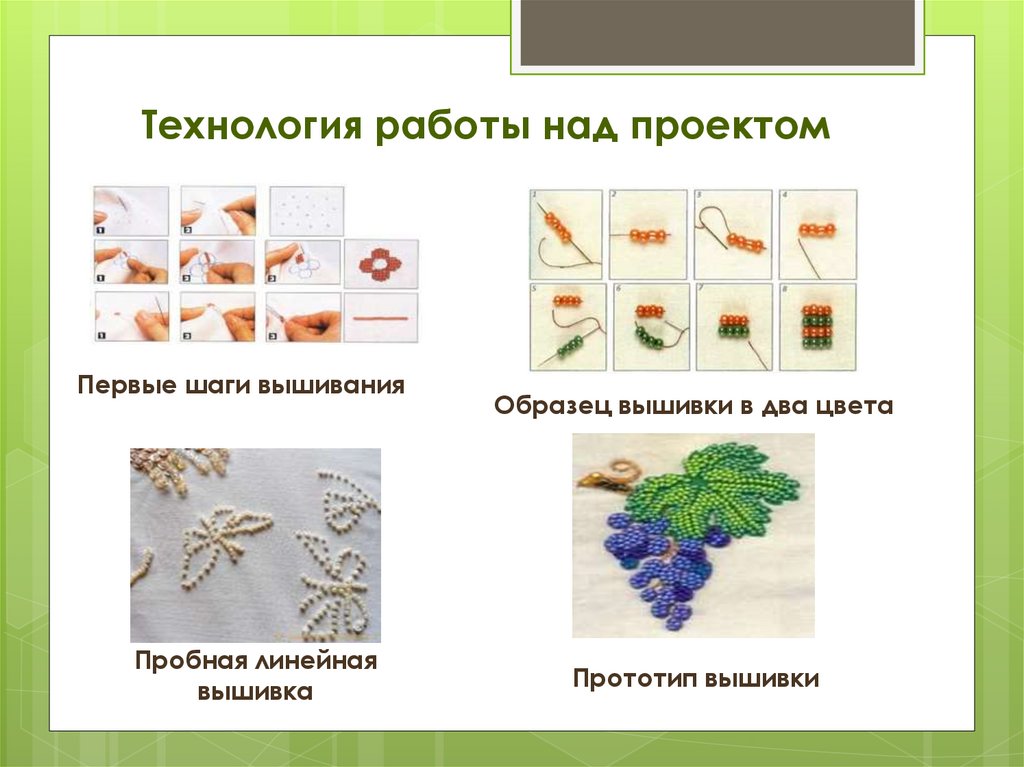 Технология работы над проектомПервые шаги вышивания