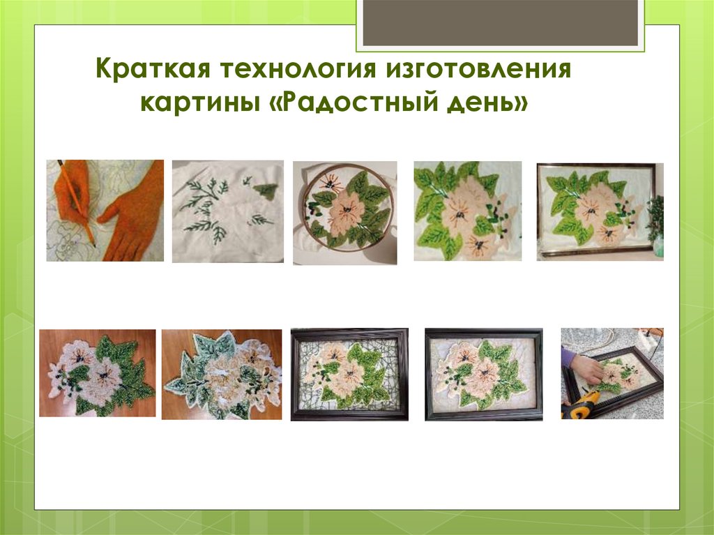 Краткая технология изготовлениякартины «Радостный день»