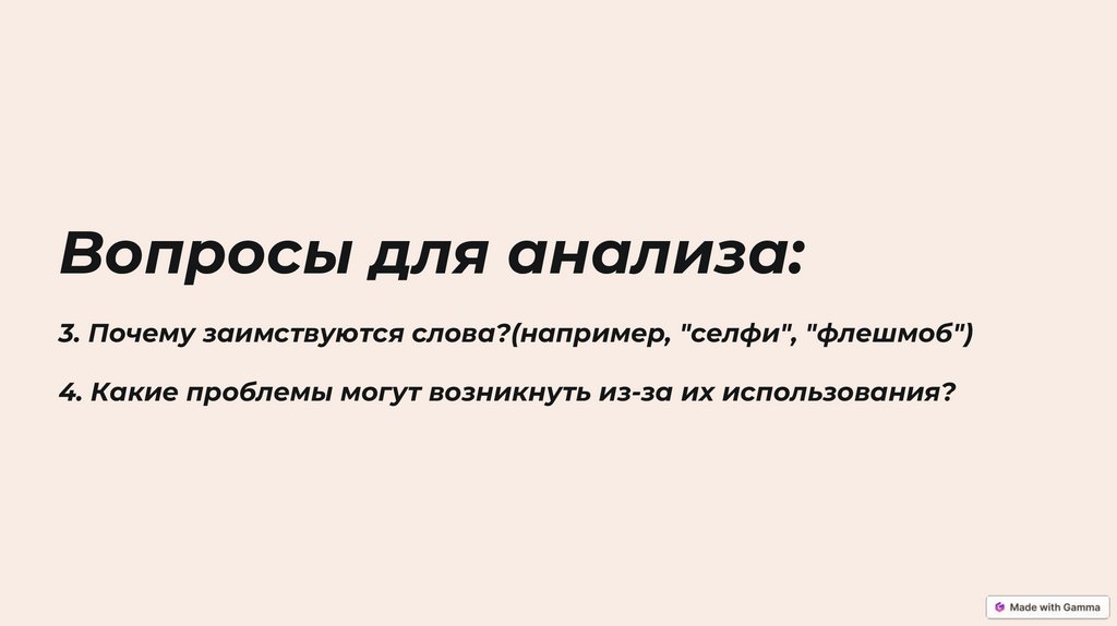 Вопросы для анализа:3. Почему заимствуются слова?(например, "селфи", "флешмоб")
