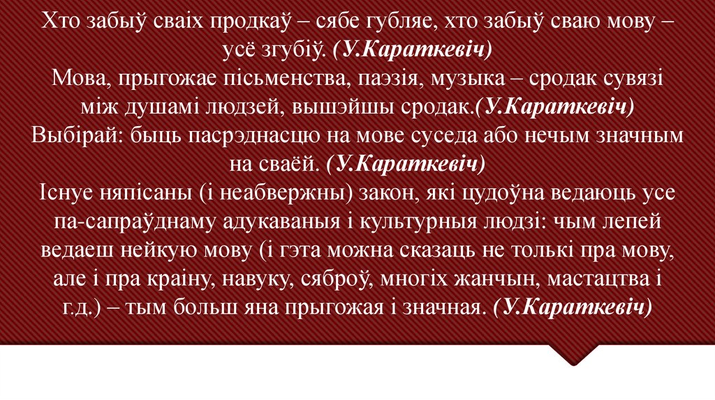 Хто забыў сваіх продкаў – сябе губляе, хто забыў сваю мову –усё згубіў. (У.Караткевіч)
