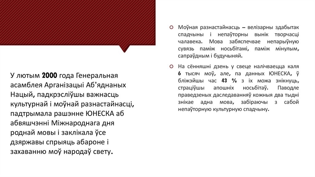 захаванню моў народаў свету.