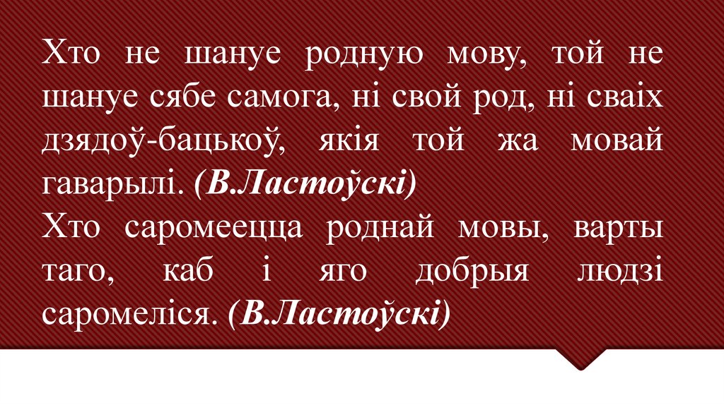 Хто не шануе родную мову, той нешануе сябе самога, ні свой род, ні сваіх