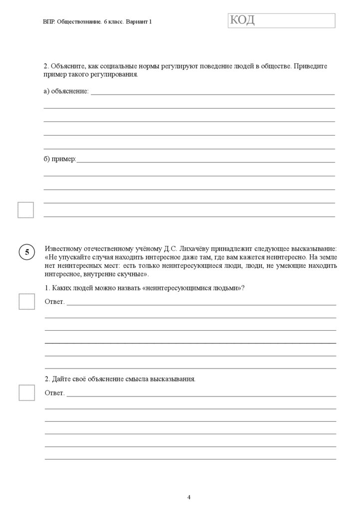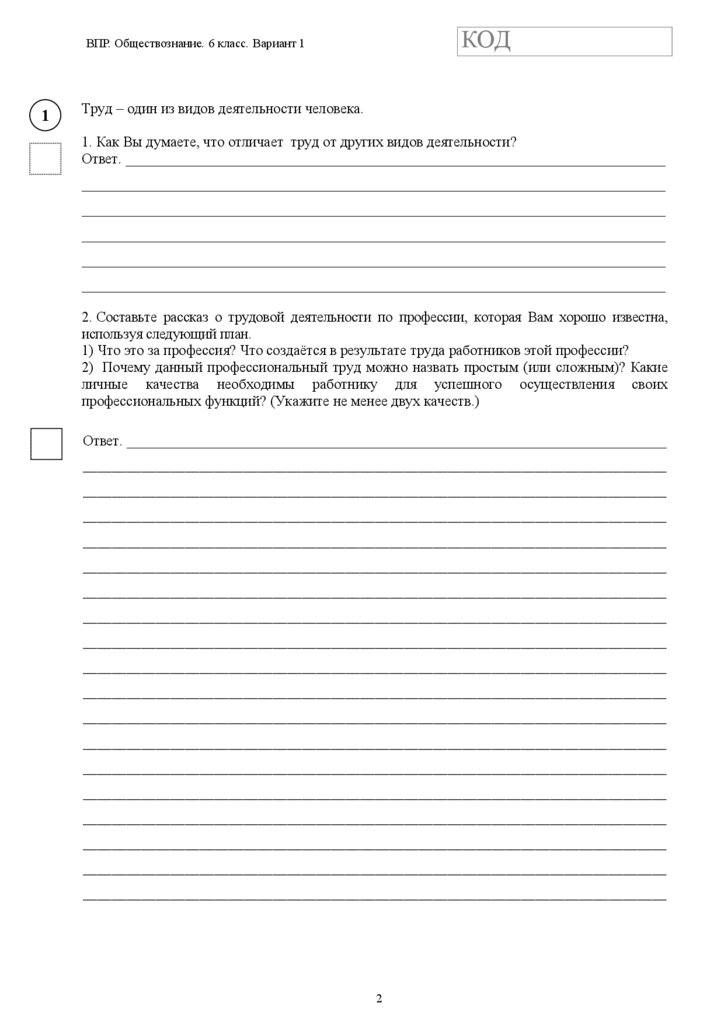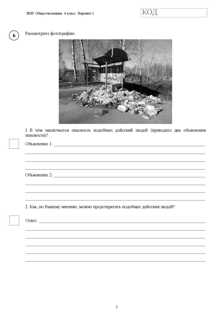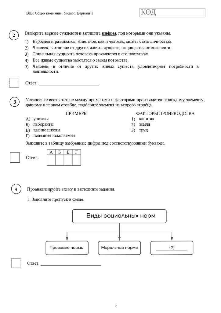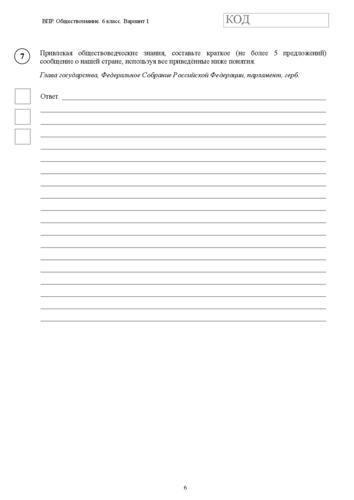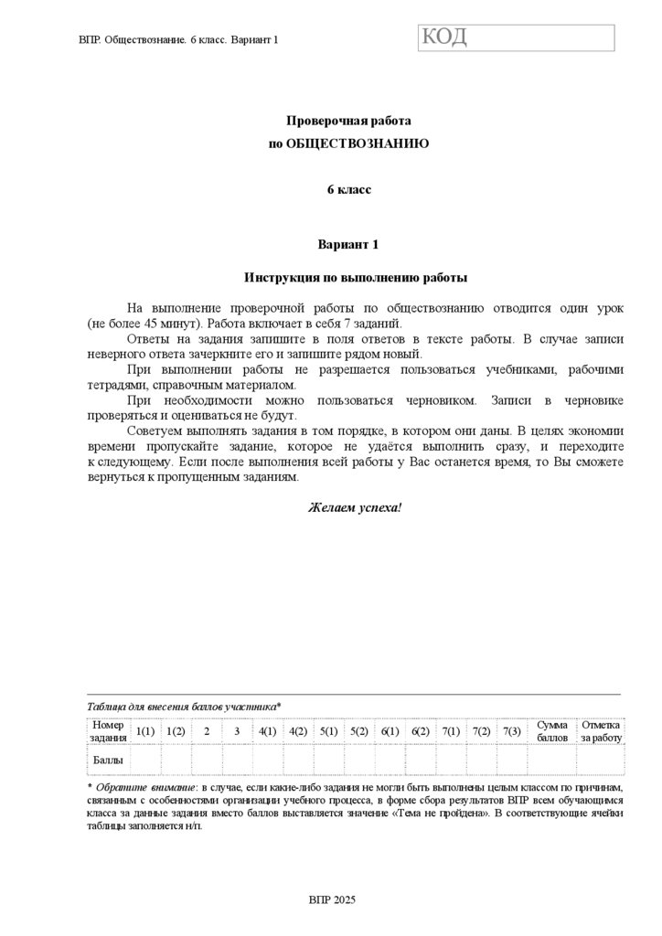 КОДВПР. Обществознание. 6 класс. Вариант 1