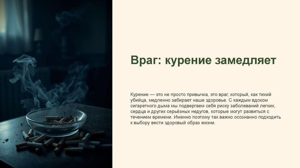 Враг: курение замедляетКурение — это не просто привычка, это враг, который, как тихий
