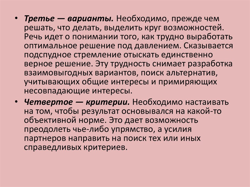 • Третье — варианты. Необходимо, прежде чемрешать, что делать, выделить круг возможностей.