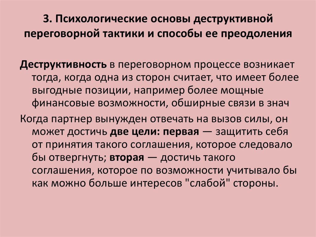 3. Психологические основы деструктивнойпереговорной тактики и способы ее преодоления