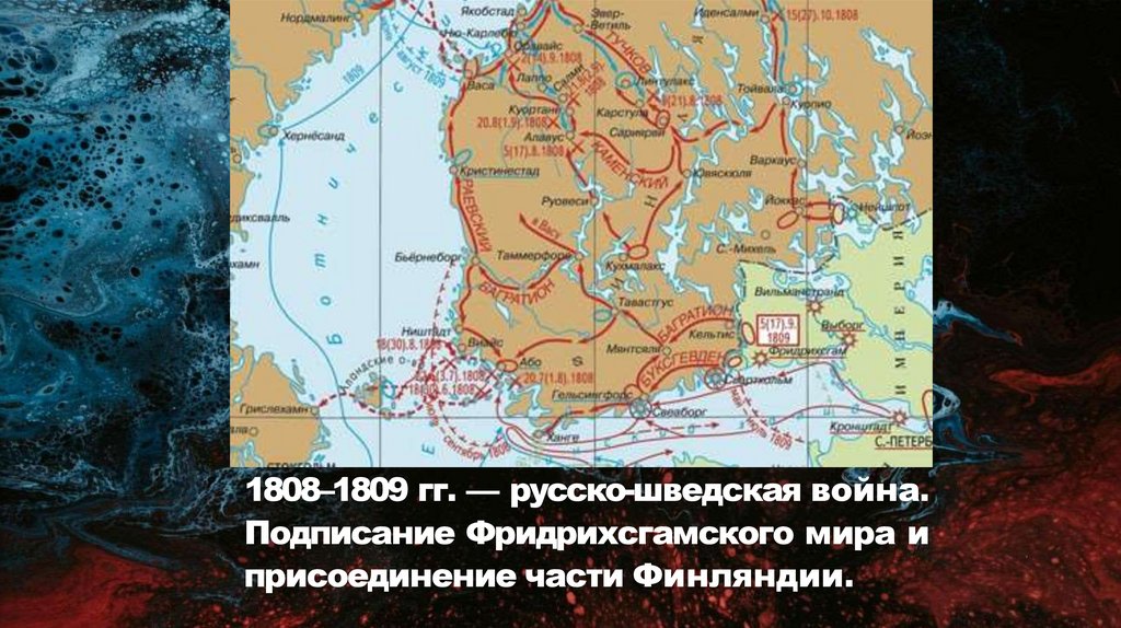 1808–1809 гг. — русско-шведская война.Подписание Фридрихсгамского мира и