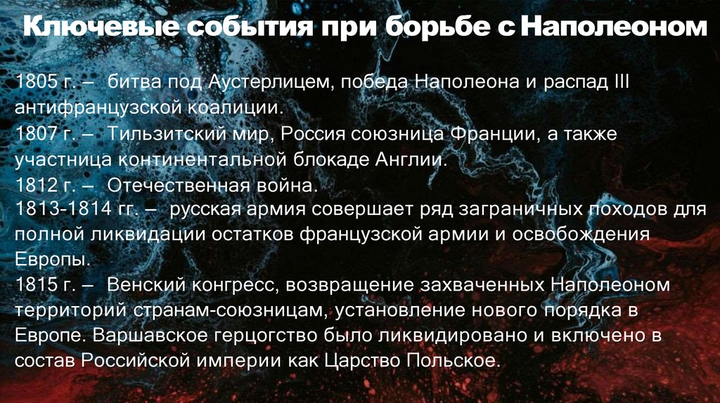Ключевые события при борьбе с Наполеоном1805 г. — битва под Аустерлицем, победа Наполеона и распад III