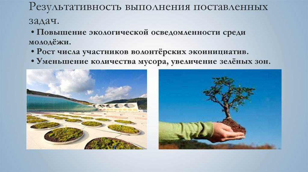 • Уменьшение количества мусора, увеличение зелёных зон.