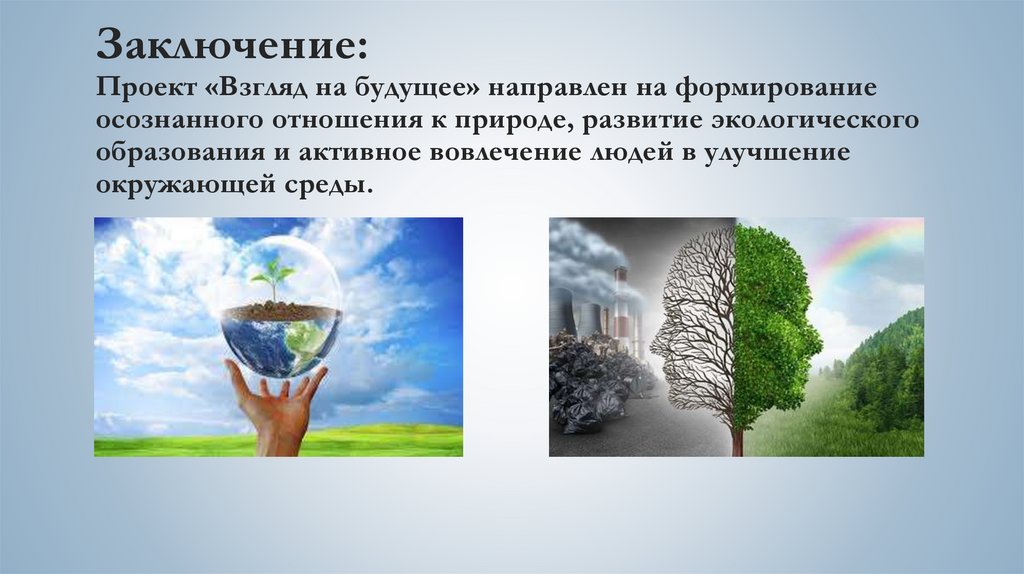 Заключение:Проект «Взгляд на будущее» направлен на формирование
