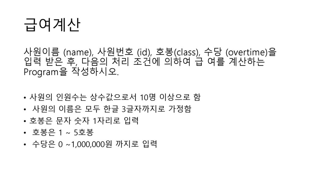 입력 받은 후, 다음의 처리 조건에 의하여 급 여를 계산하는