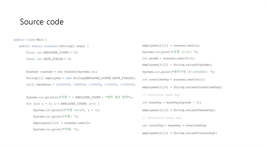 • 사원의 인원수는 상수값으로서 10명 이상으로 함