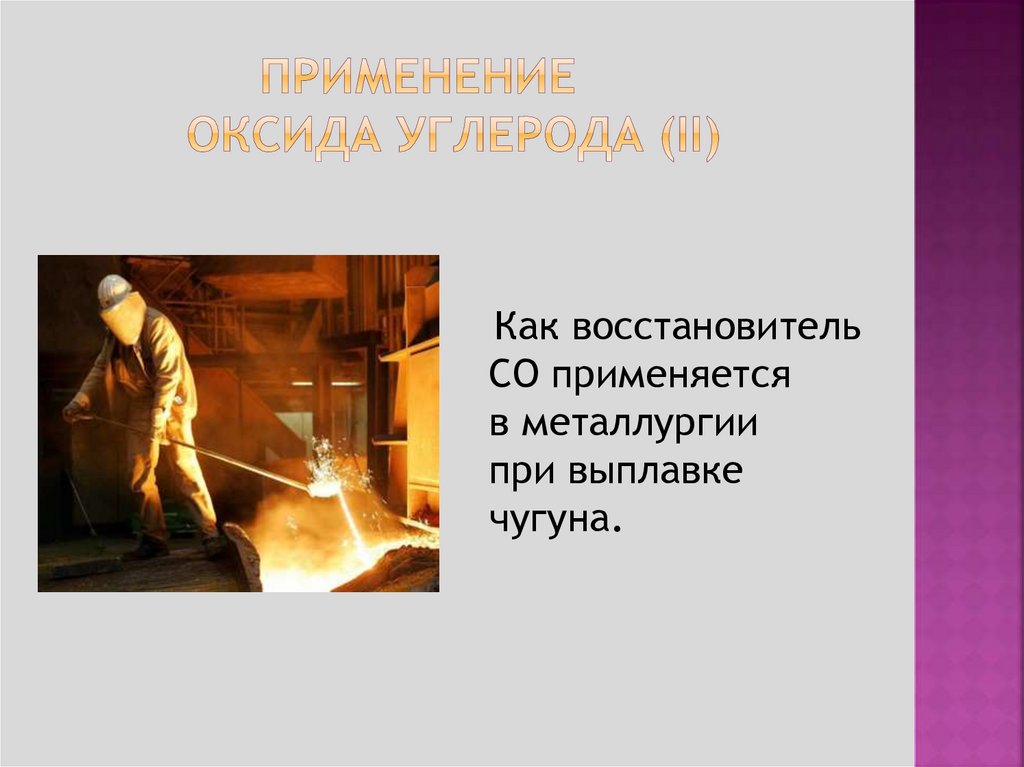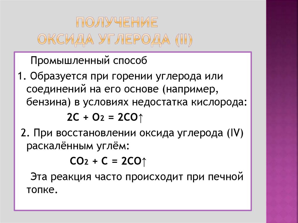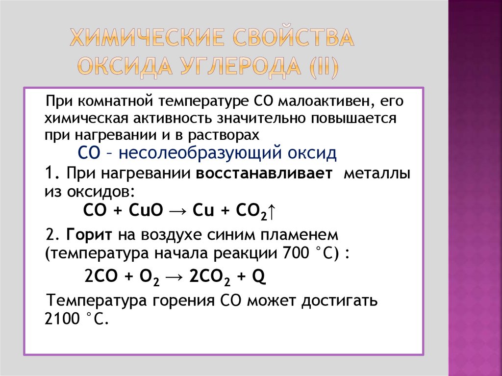 При комнатной температуре CO малоактивен, егохимическая активность значительно повышается