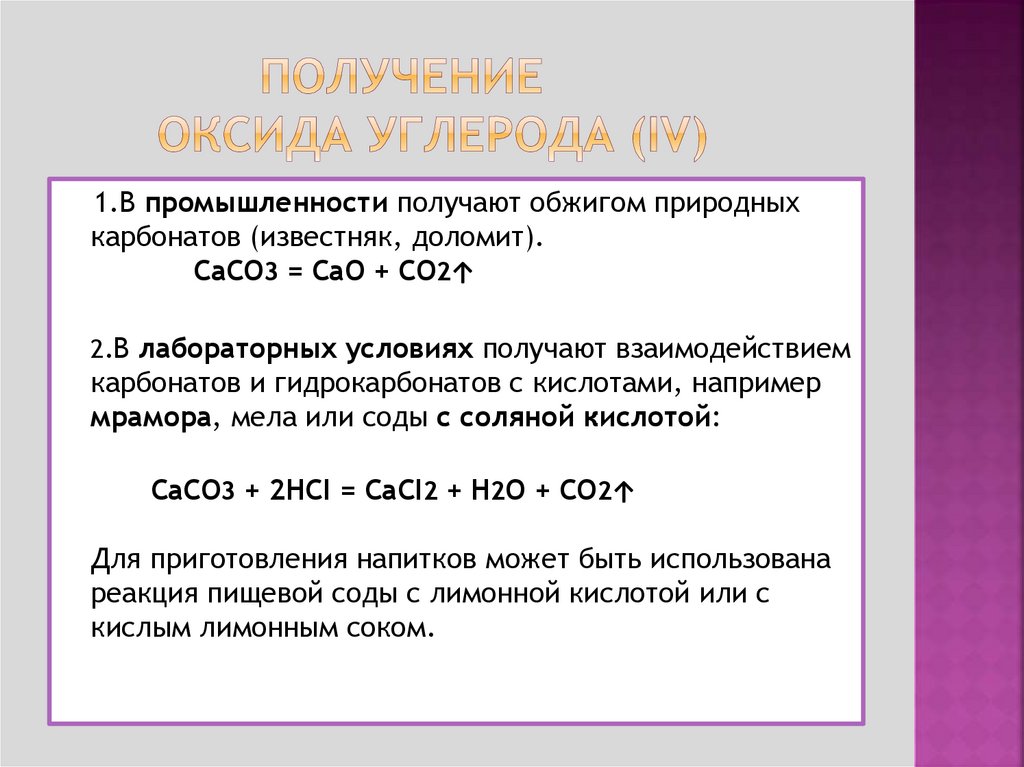 1.В промышленности получают обжигом природныхкарбонатов (известняк, доломит).