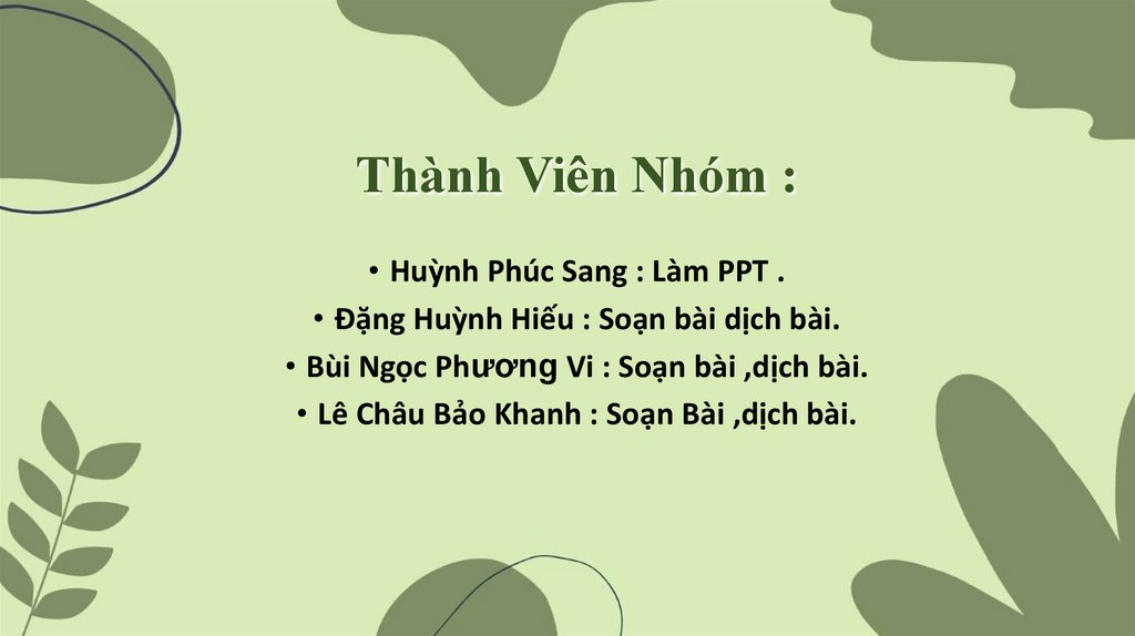 Thành Viên Nhóm :• Huỳnh Phúc Sang : Làm PPT .