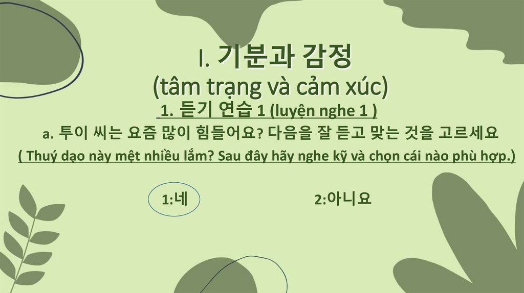 I. 기분과 감정(tâm trạng và cảm xúc)