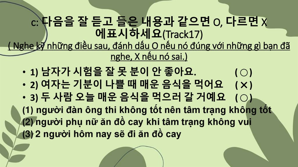 c: 다음을 잘 듣고 들은 내용과 같으면 O, 다르면 X에표시하세요(Track17)
