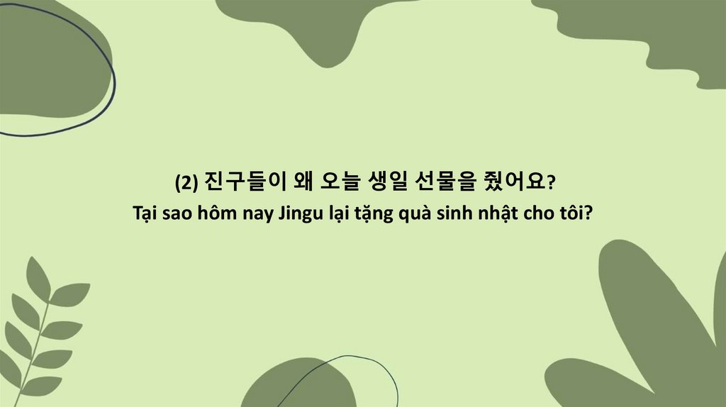(2) 진구들이 왜 오늘 생일 선물을 줬어요?Tại sao hôm nay Jingu lại tặng quà sinh nhật cho tôi?