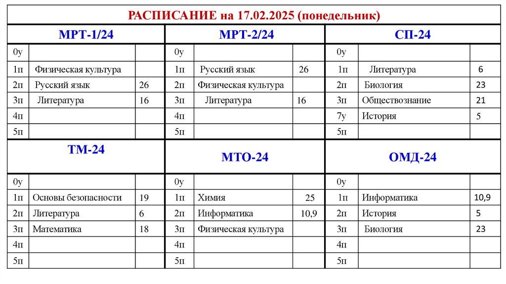 РАСПИСАНИЕ на 17.02.2025 (понедельник)МЧМ/1-24