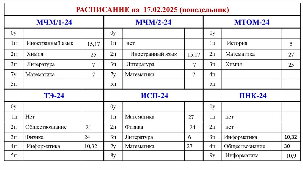 РАСПИСАНИЕ на 17.02.2025 (понедельник)ИСПв -24