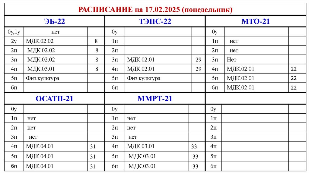 РАСПИСАНИЕ на 17.02.2025 (понедельник)ЭБ-22