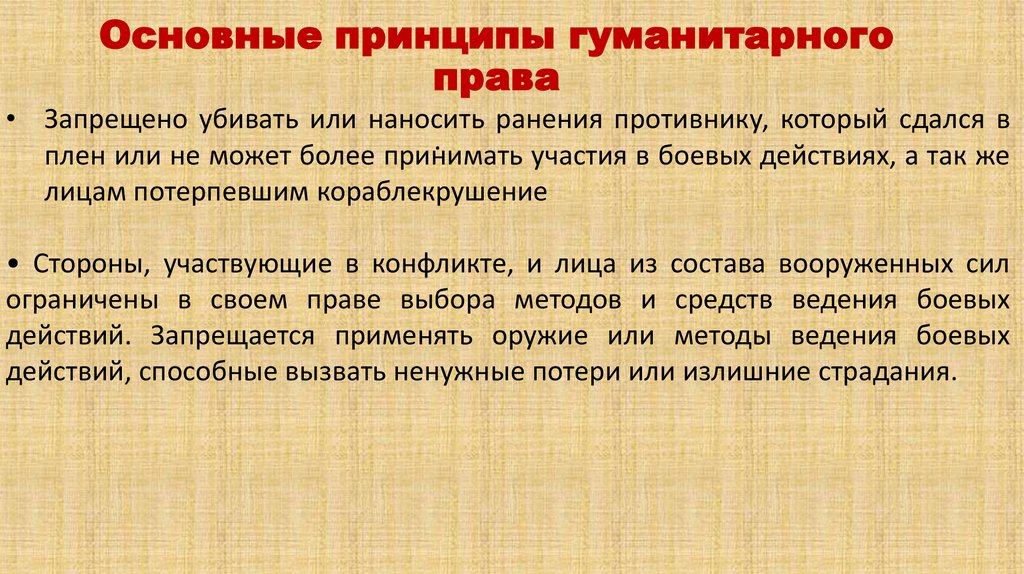 • Запрещено убивать или наносить ранения противнику, который сдался в