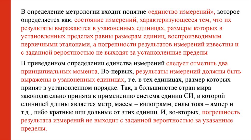 В определение метрологии входит понятие «единство измерений», котороеопределяется как. состояние измерений, характеризующееся тем, что их