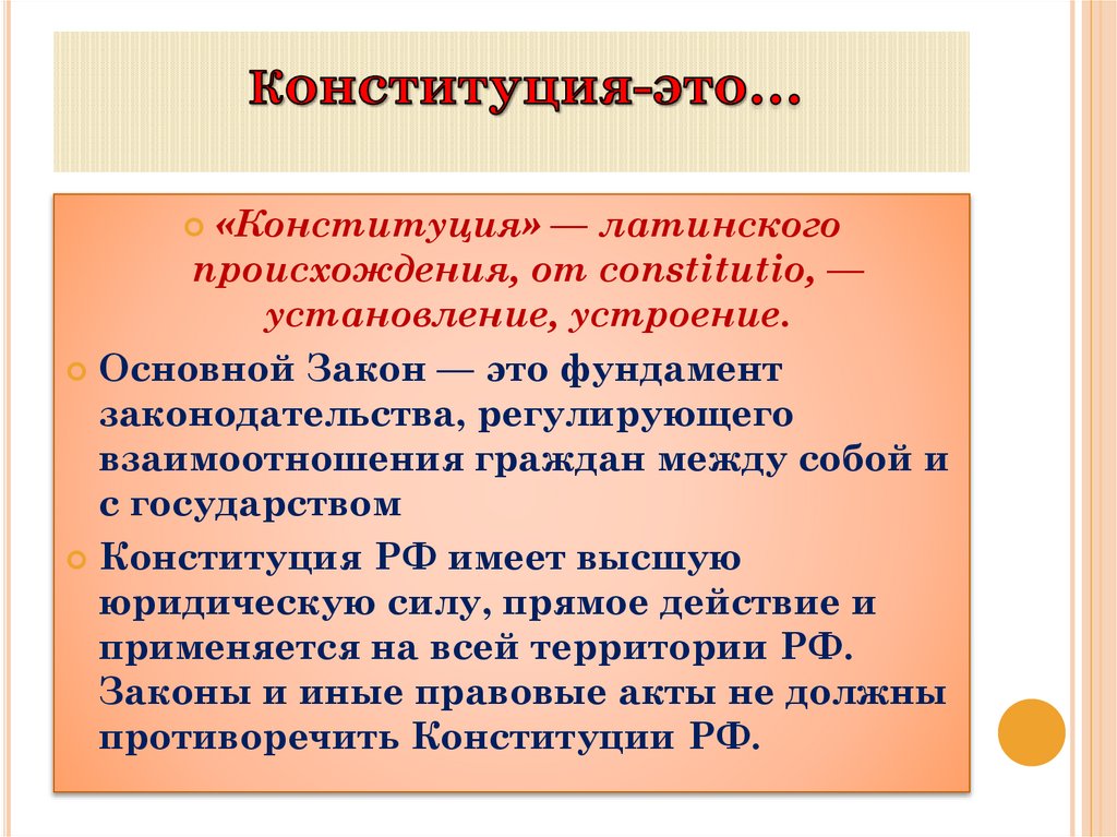 «Конституция» — латинскогопроисхождения, от constitutio, —