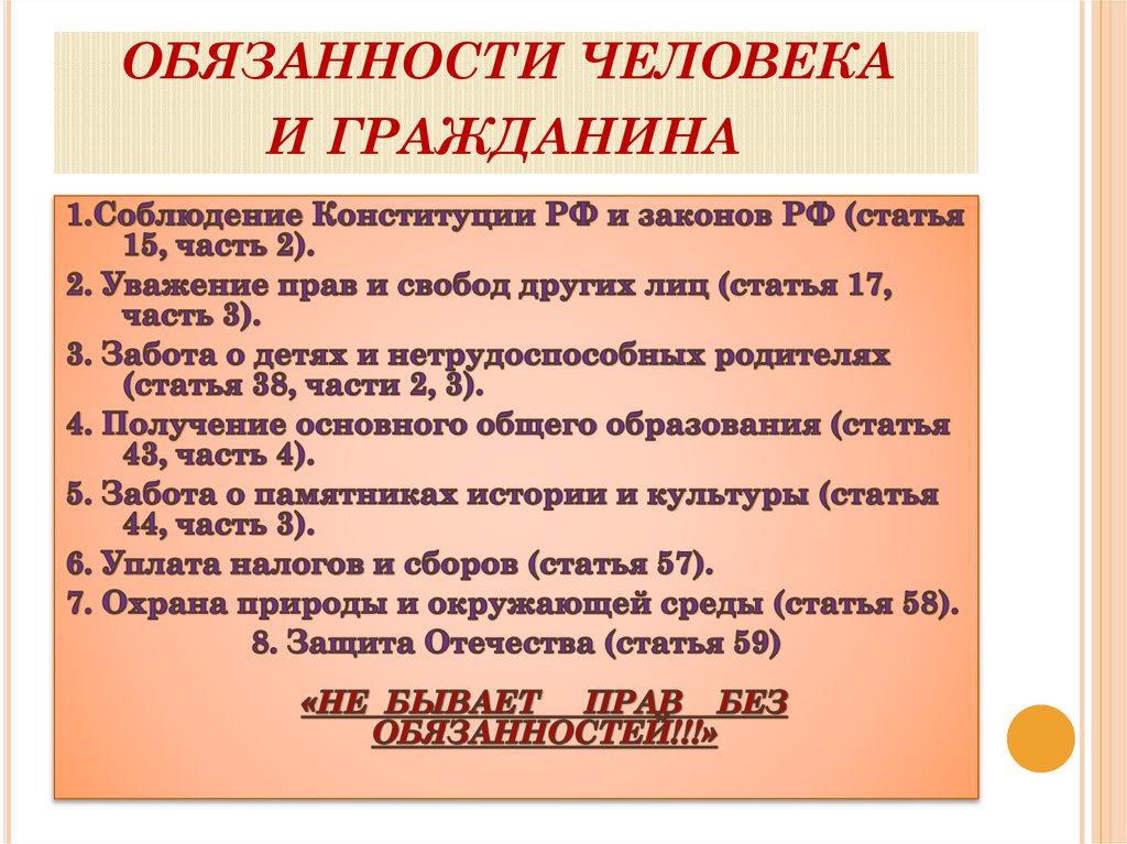 ОБЯЗАННОСТИ ЧЕЛОВЕКАИ ГРАЖДАНИНА