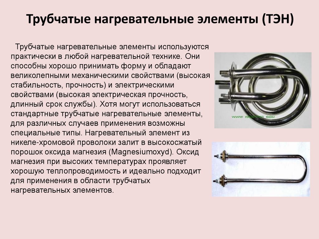 Трубчатые нагревательные элементы (ТЭН)Трубчатые нагревательные элементы используются