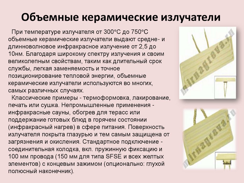 Объемные керамические излучателиПри температуре излучателя от 300°C до 750°C