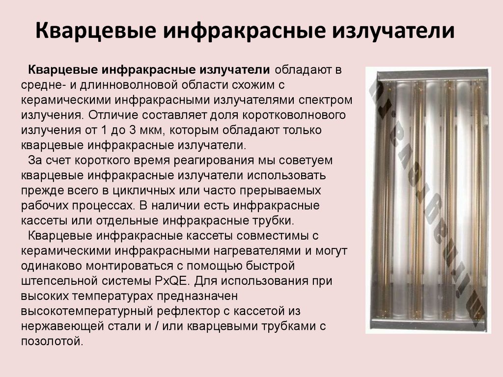 Кварцевые инфракрасные излучателиКварцевые инфракрасные излучатели обладают в