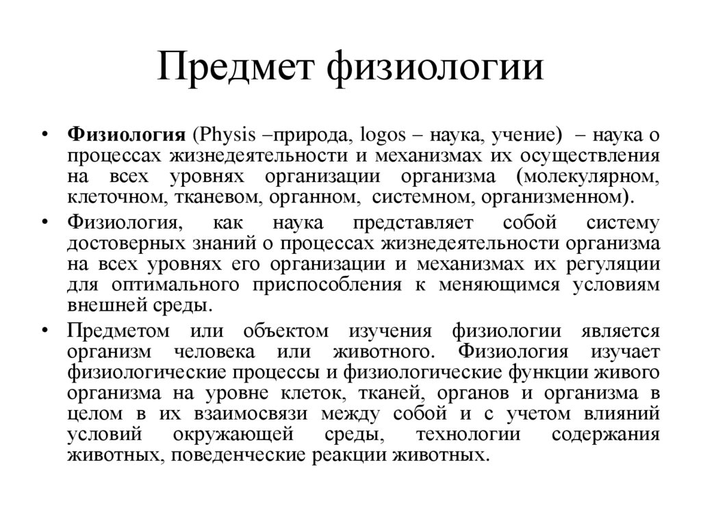 Предмет физиологии• Физиология (Physis –природа, logos – наука, учение) – наука о