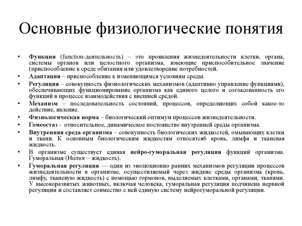 Основные физиологические понятияФункции (function-деятельность) – это проявления жизнедеятельности клетки, органа,